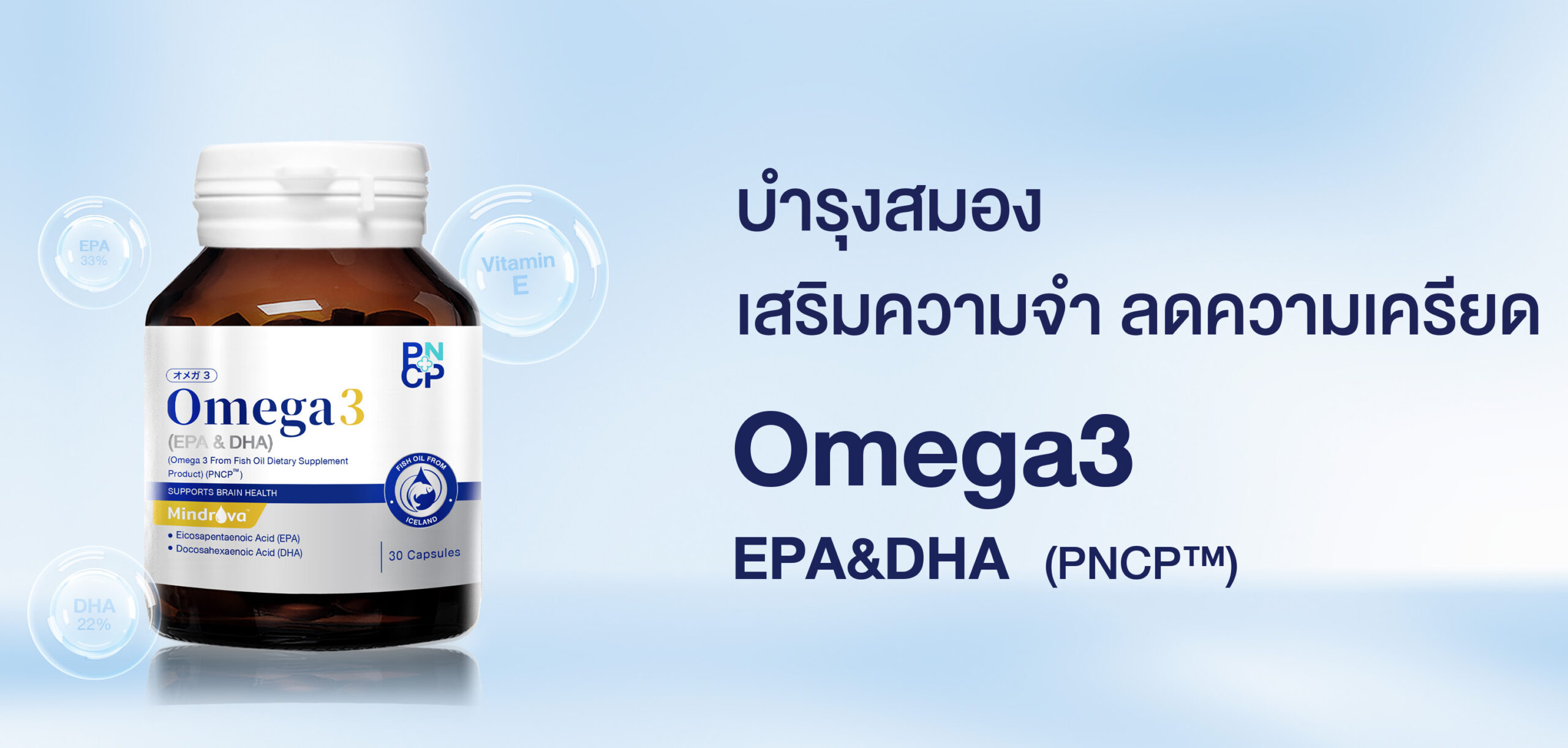 เพื่อสนับสนุนความจำ การเรียนรู้ และความสดชื่นของสมองในทุกวัน ประโยชน์เด่นของ OMEGA3 (PNCP™)- บำรุงสมองและระบบประสาท